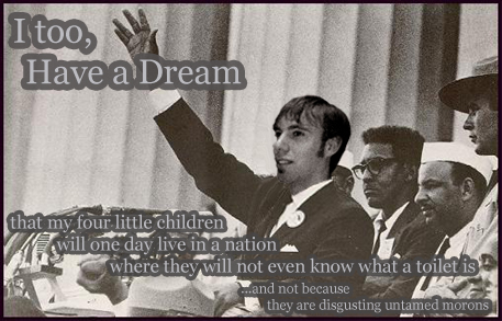 We talked in depth about the toga party and he came up with some interesting points. Perhaps back when in 1978 when Animal House came out, a toga party was a wild idea, but as far as he was concerned times have changed. "Changed?" I said, you mean "Carter isn't in the white house anymore?" Then he slapped me for being fresh.